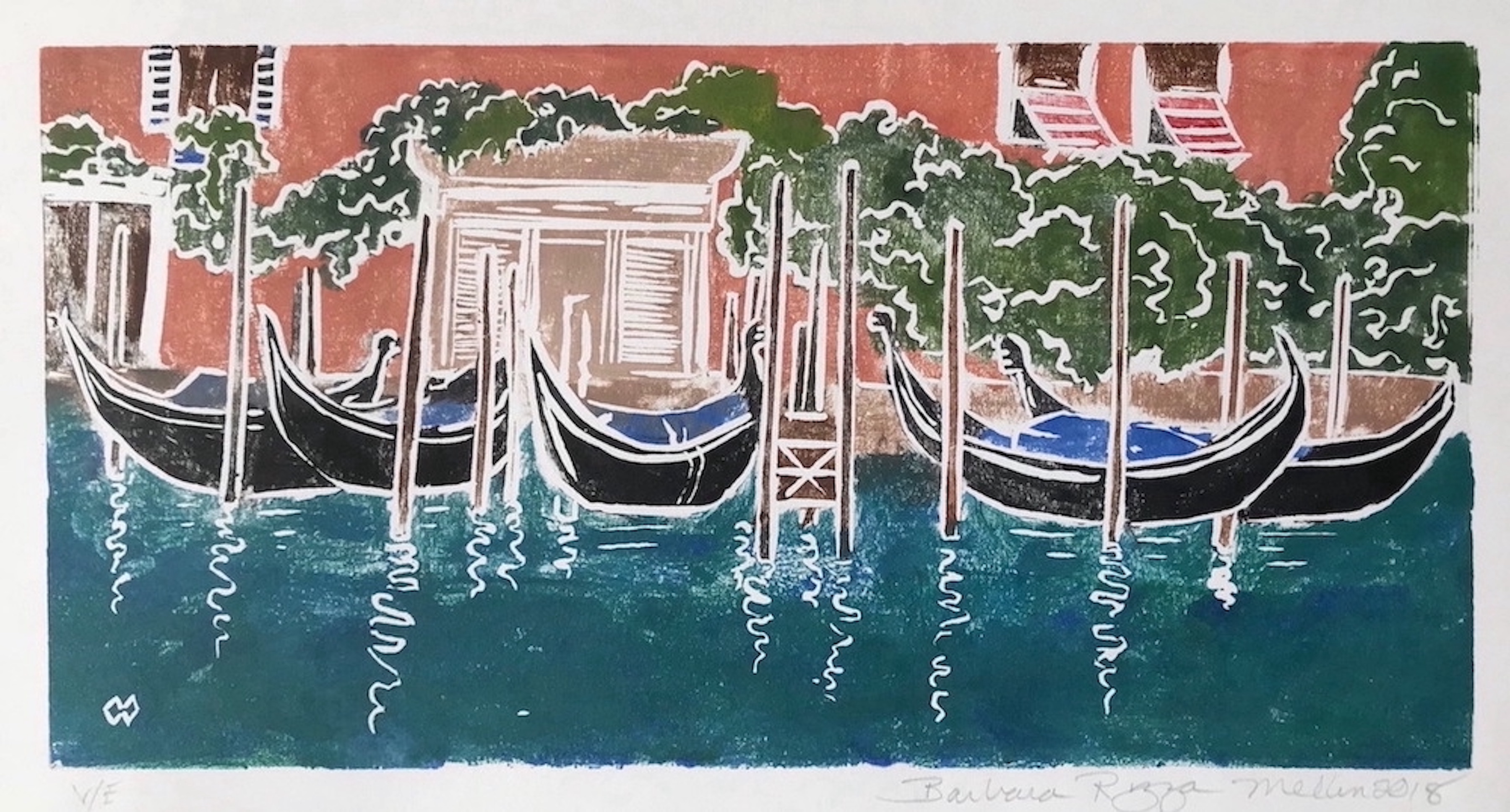 Barbara Rizza Mellin is an award-winning painter, printmaker and poet, who recently relocated and established her home studio in Aston, PA. She holds a BS in Education from Northeastern U. and a graduate degree in Art History from Harvard University. She has taught art and writing at all levels from K to College and has written about art, artists and world culture for national and international publications. As an art historian and artist, she creates art that reinterprets traditional art techniques for modern audience. She enjoyed sharing her love of printmaking with other through workshops, lectures and demonstrations. Her artwork has been exhibited throughout the U. S, including one-woman exhibitions at Neumann University (Aston, PA), Duke U., SECCA (Southeast Center for Contemporary Art), and Piedmont-Triad International Airport, Greensboro. NC. She has also exhibited in museum and gallery group shows, including at High Point U, Salem College (NC), Hickory (NC) Museum of Art, Attleboro (MA) Museum of Art, Whistler Museum, Spazio SV-Centro Espositivo San Vidal, Venice, Italy, Fresno Printmaker’s Guild, and Aston Mills Studios, Aston, PA. In addition to MCGOPA, she is a juried member of Oil Painters of America, International Mezzotint Society, The Boston Printmakers, Delaware Valley Art League, and American Color Print Society