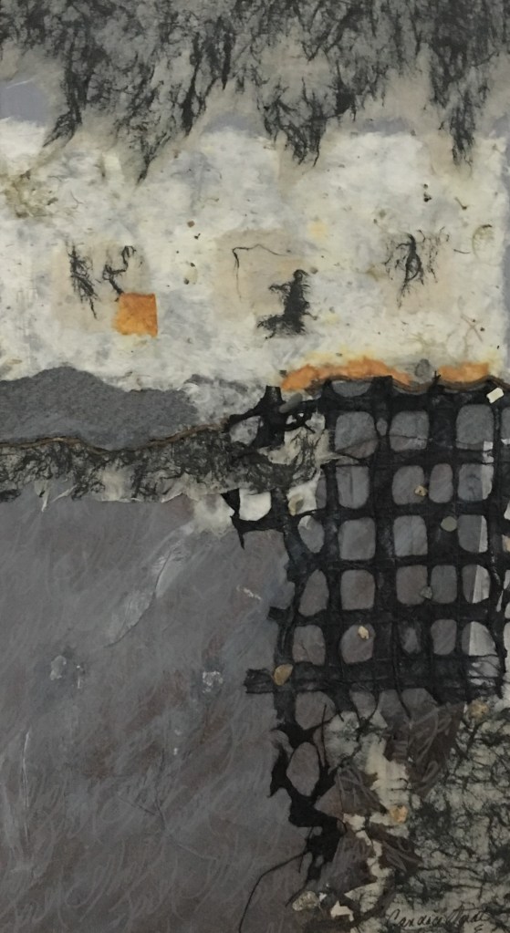 For many years I have been a beach comber and an urban street scavenger passionately gathering unusual objects and materials discarded by nature and man that speak to me. Wherever I travel I seek out beautiful papers to bring home to add to my collection. I am inspired by nature’s beautiful colors, architecture and landscapes that surround us everyday capturing “life snaps” through my camera lens. This passion has led me to take numerous classes in watercolor, mixed media, paper making, printmaking and encaustic wax taught by inspiring artists/instructors. When I enter my studio I bring these things together to create mixed media pieces combining bold colors, subtle tones, multiple textures and shapes. Look closely at my art and perhaps you will see something that captures your imagination and speaks to your soul.